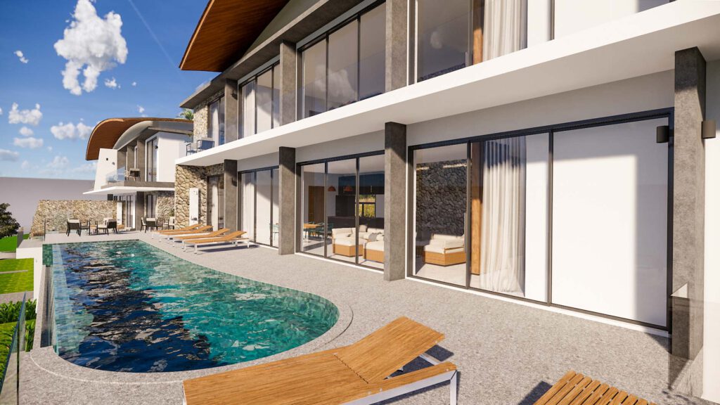 * 180° unspoiled top sea view to the Gulf of Thailand from all levels