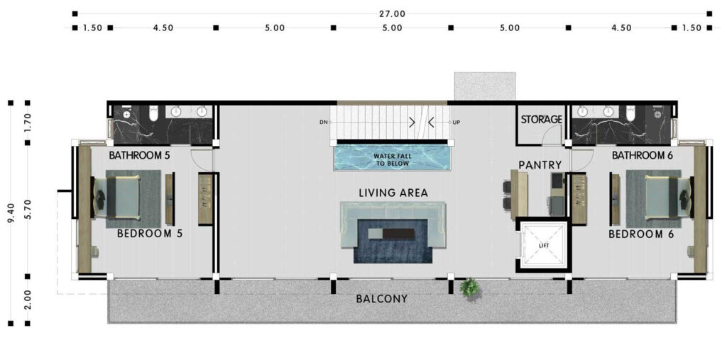| Living, Pantry (with waterfall) | 85,1 sqm |